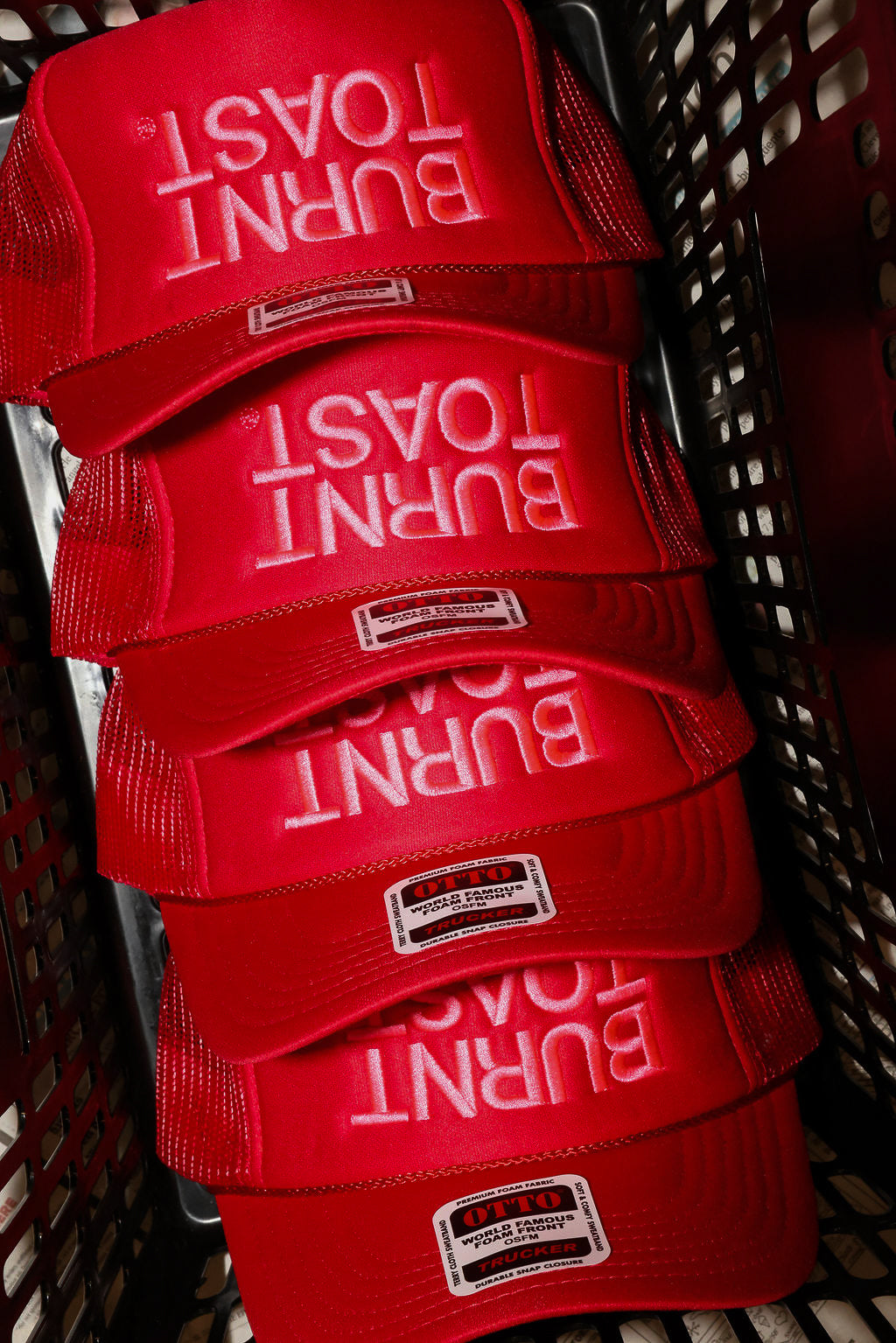 Say it louder. The Burnt Toast Upside Down Red and Pink embroidered trucker brings high-contrast color and classic Burnt Toast attitude. Structured front, breathable mesh back, and an adjustable snapback for the perfect fit. It’s the kind of hat that finishes the outfit without trying.