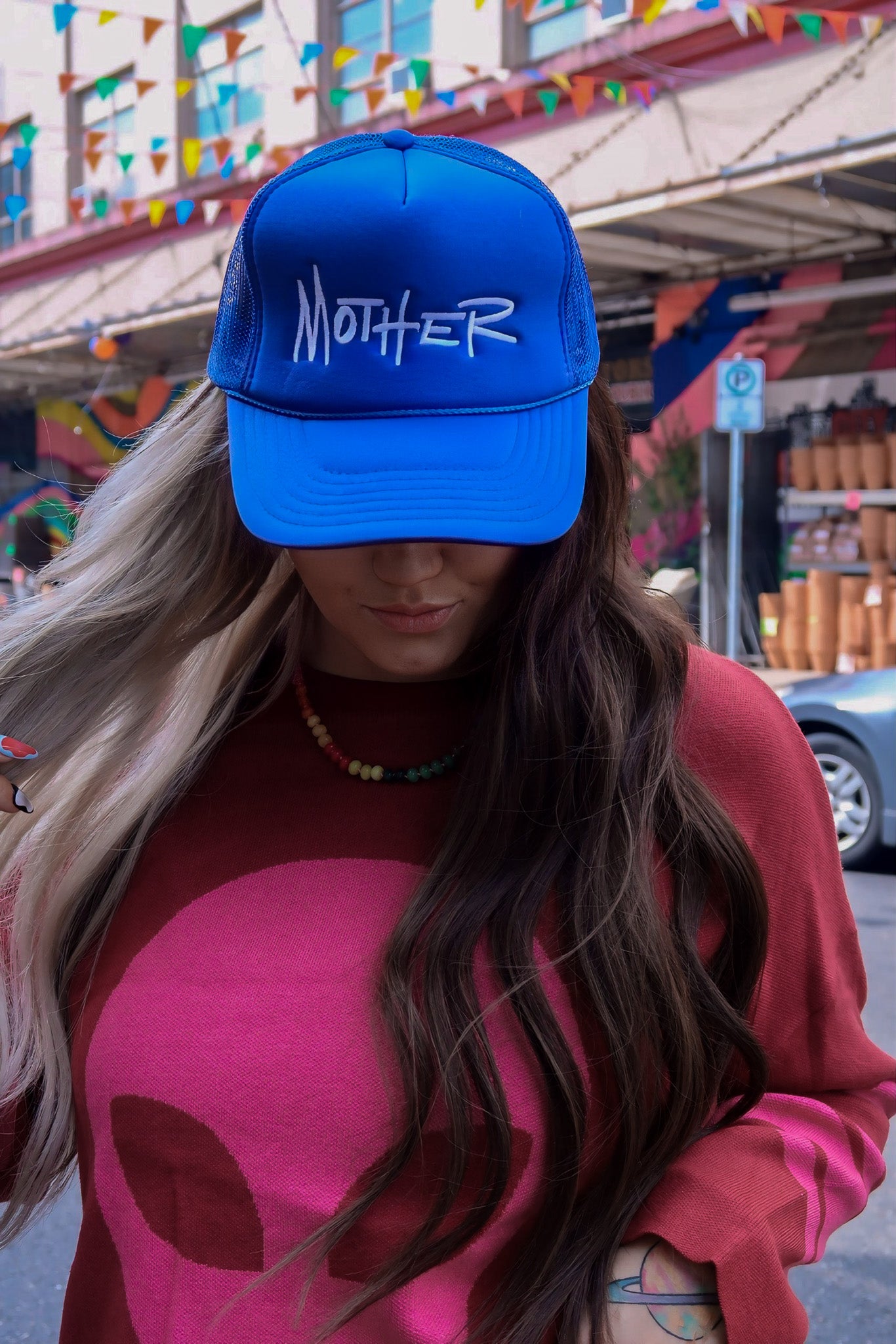 Mother Blue Embroidered Trucker Hat
