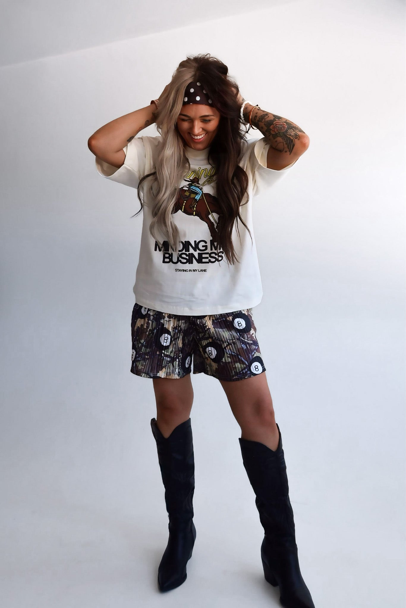 Stack the odds in your favor. The Lucky Shot Plissé Shorts flip camo into a statement with bold 8-ball graphics and pleats that move with you. Lightweight, playful, and unapologetically bold, they’re the kind of shorts that turn a simple fit into a full look.