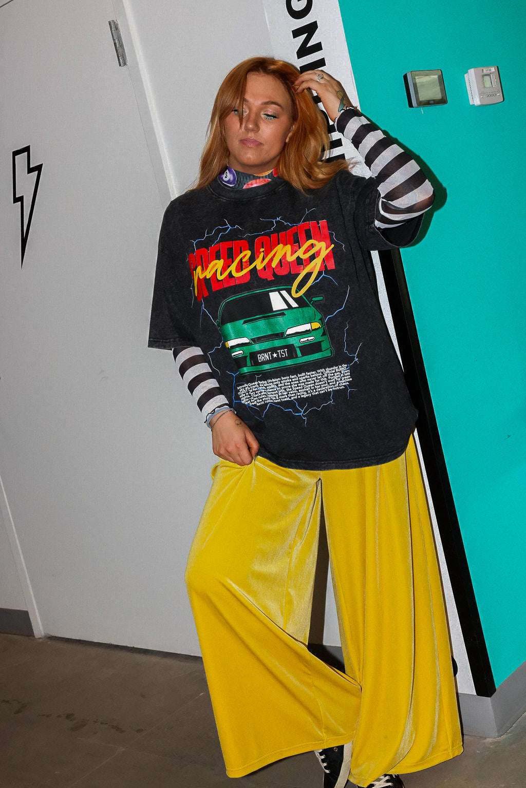 Built for speed. Burnt to the core. The Speed Queen Racing Tee takes black acid wash and throws it into overdrive with a bold, screen-printed racing graphic that feels fast even standing still. Heavyweight cotton, washed down for that lived-in streetwear edge—this one’s all gas, no brakes.